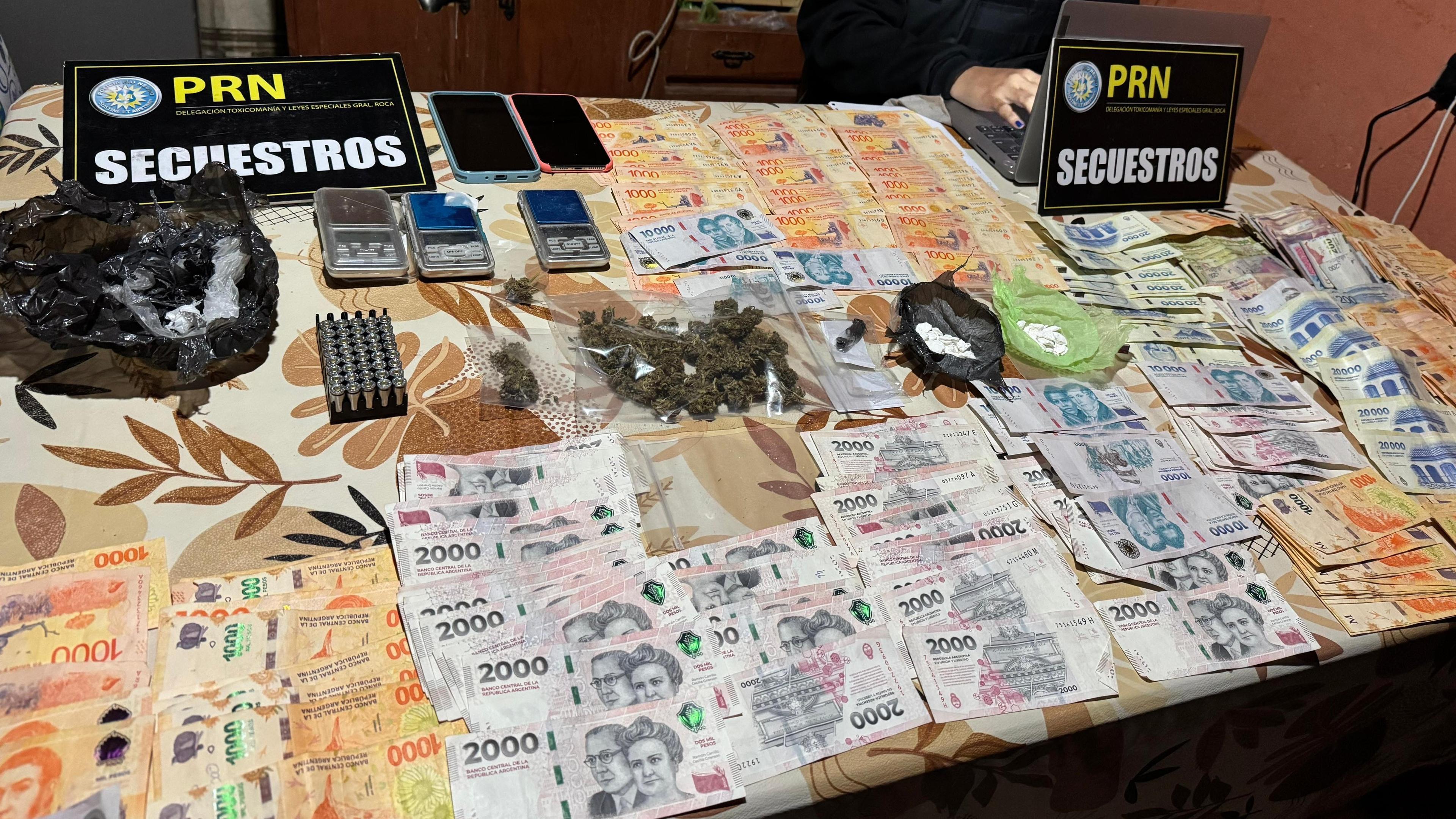 Un importante procedimiento antidrogas se desarrolló en Catriel, donde personal de la División Toxicomanía y Leyes Especiales desarticuló una boca de expendio de estupefacientes. Durante los allanamientos, se secuestraron cocaína, marihuana, metanfetaminas, dinero en efectivo y elementos vinculados al fraccionamiento y la venta de drogas. La investigación fue coordinada con la Justicia Federal de General Roca y una pareja quedó vinculada a la causa por infracción a la Ley 23.737.